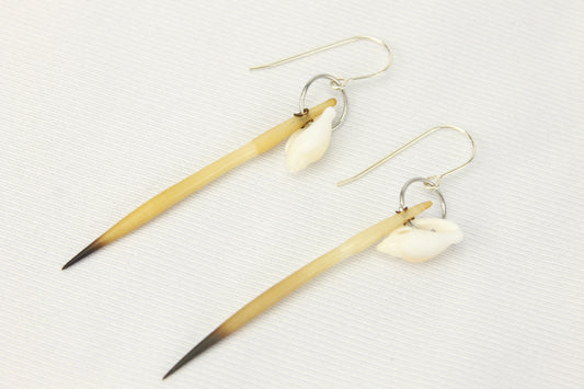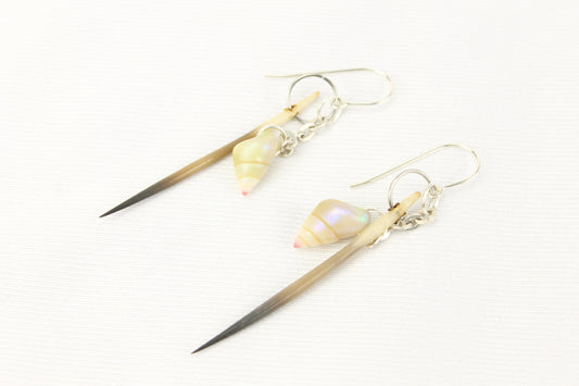 Penguin Shell and Echidna Quill Earrings